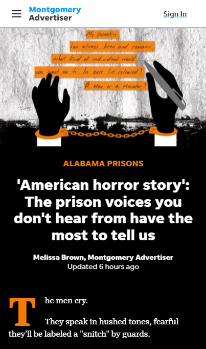 Story web.archive.org/web/20200419132257/https://www.montgomeryadvertiser.com/in-depth/news/2019/11/13/alabama-department-corrections-prison-inmates-describe-horrid-conditions/2234480001/
